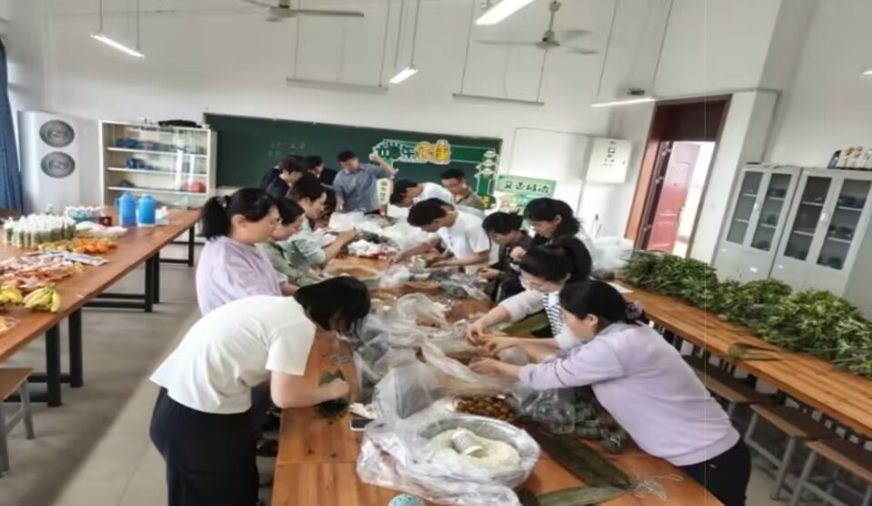活动现场,教职工们热情参与,亲手体验咸甜馅料包粽的乐趣。粽叶翻转、糯米填装、棉线缠绕,大家在动手实践中感受着传统民俗的独特魅力。随后的茶话联谊环节,伴随着清香的绿茶与新鲜的时令水果,教职工们畅谈各地端午习俗——从悬挂艾草驱邪避疫的传统,到制作香囊寄托美好祝愿的讲究,温馨的文化漫谈让节日氛围更加浓郁。