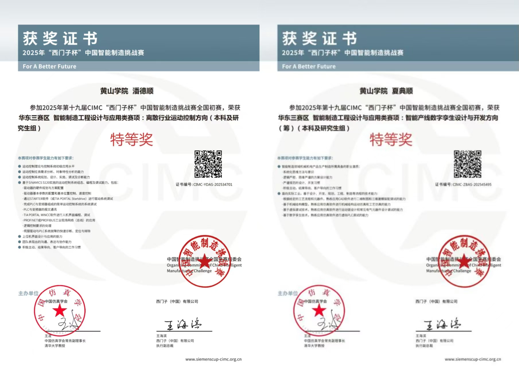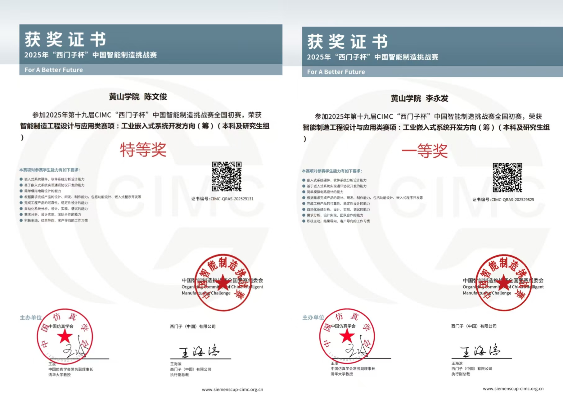 2025年7月,由教育部高等学校自动化类专业教学指导委员会、西门子(中国)有限公司和中国仿真学会联合主办的第十九届”西门子杯“中国智能制造挑战赛初赛圆满落幕。我校yl88858永利集团共组织并选派39支队伍,与安徽大学、安徽工业大学等高校同台竞技。经过激烈角逐,我校代表队荣获赛区特等奖3项、一等奖4项、二等奖13项、三等奖6项,创我校在该项赛事赛区历史上的最佳成绩。