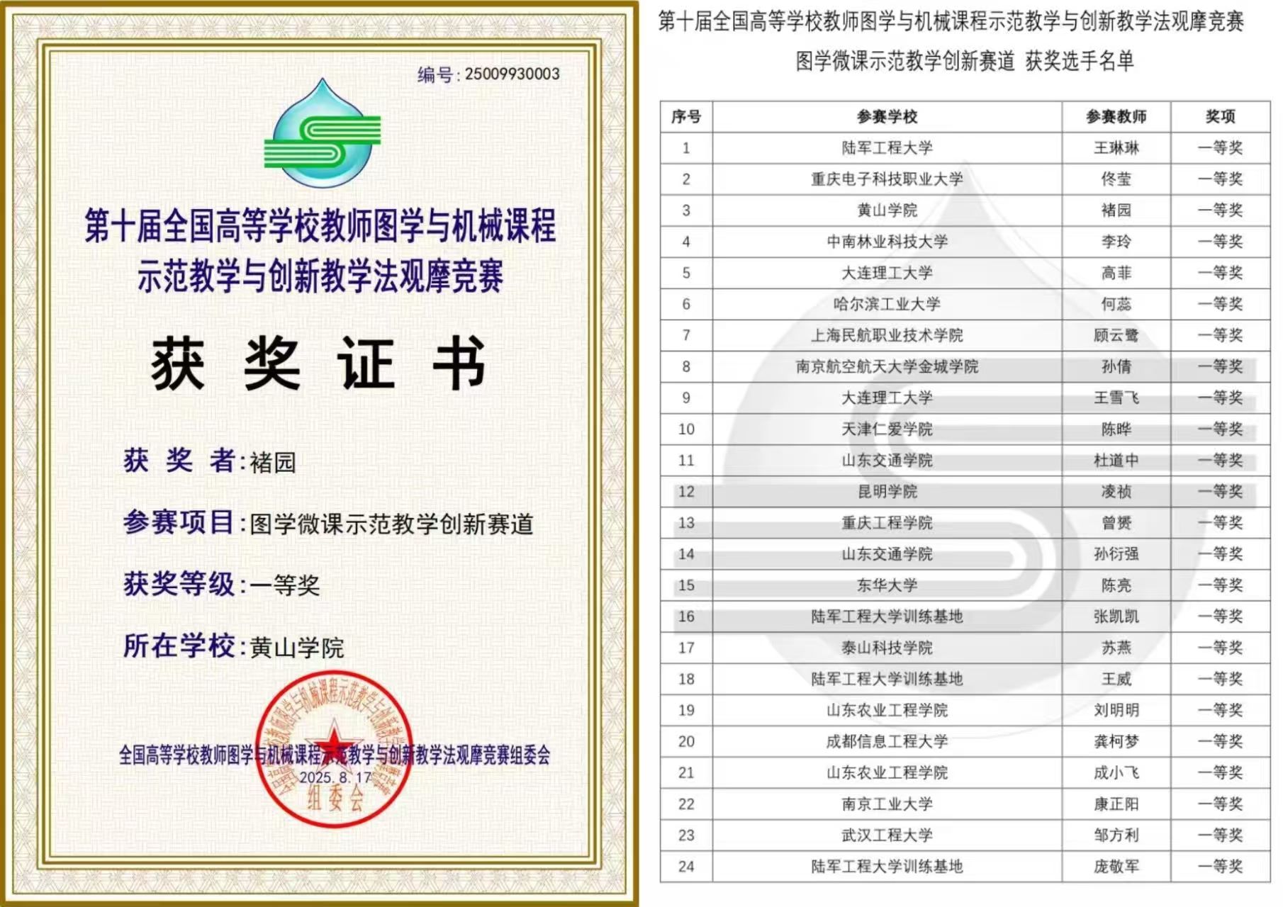 8月16至17日,第十届“高教杯”全国高等学校教师图学与机械课程示范教学与创新教学法观摩竞赛在南京工业大学举行。yl88858永利集团褚园老师代表我校参赛,并在图学微课示范教学创新赛道中荣获国家级一等奖。