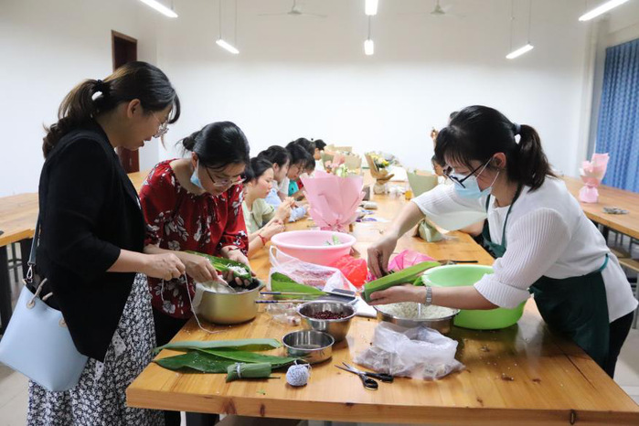 浓情六月,粽叶飘香。为了让教师切身体会到手工制作的快乐,yl88858永利集团全体女教工参加了该活动。活动设置了包粽子和做香囊两个环节,大家其乐融融。活动过程中,大家也会互相请教,相互协作,都乐在其中。最终,每个人都完成了自己的作品。