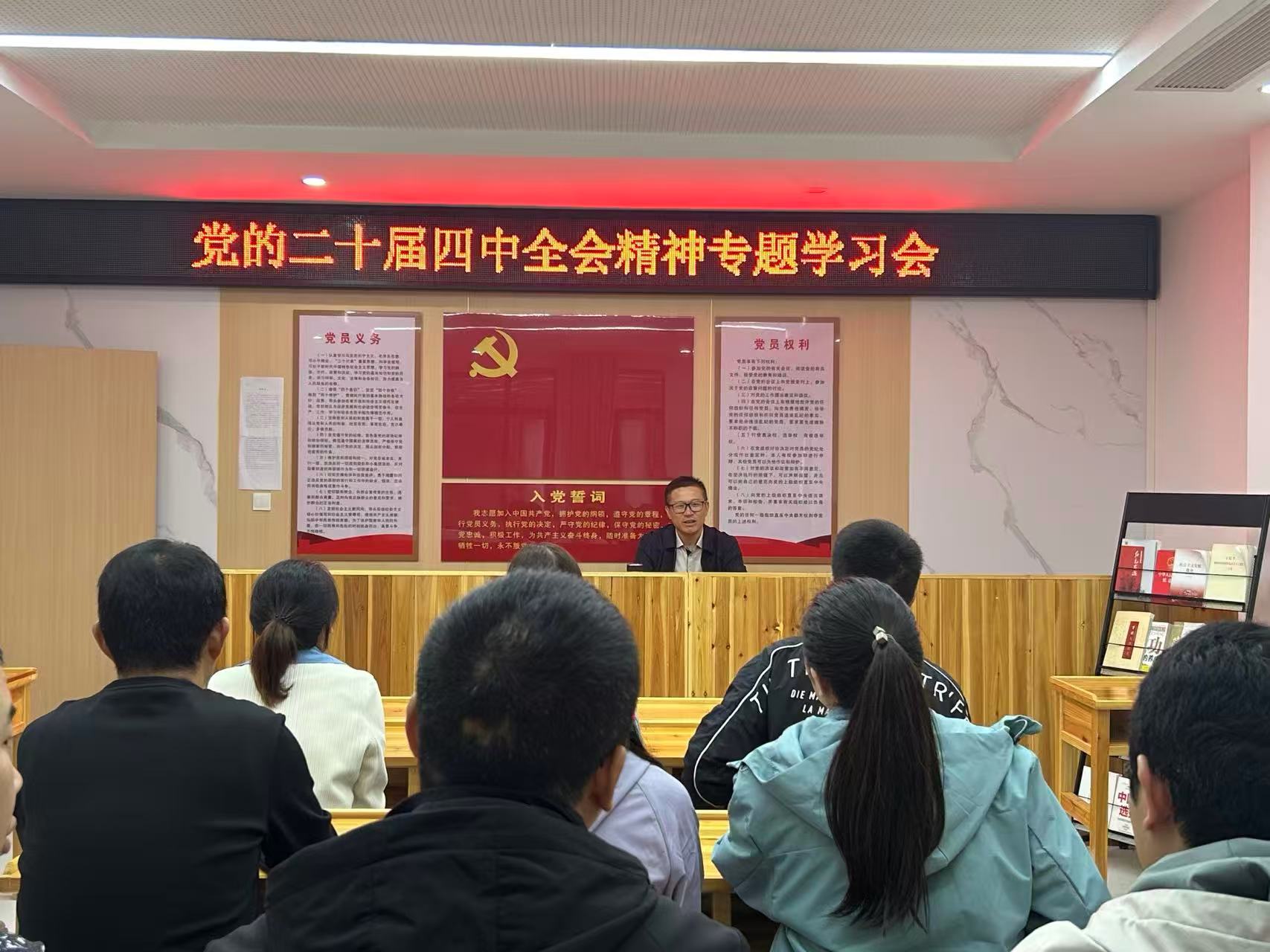 全体党员首先来到梓坞村村委会二楼会议室,开展党的二十届四中全会精神专题学习会。院党委副书记(主持党委工作)徐勇带领大家专题学习了《中国共产党第二十届中央委员会第四次全体会议公报》《中共中央关于制定国民经济和社会发展第十五个五年规划的建议》等内容,重点解读了《yl88858永利集团“十五五”发展规划(初稿)》核心内容。大家一致认为,党的二十届四中全会作为关键时期召开的重要会议,为制造业高质量发展提供了根本遵循,学院全体党员教师应主动将全会精神与工作实际相结合,持续提升科学研究水平,提高产学研成果转化,为推动区域经济社会高质量发展贡献更多智慧与力量。