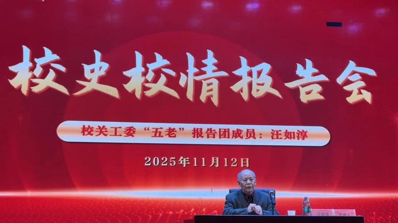 立冬已至,秋意沉淀,文脉绵延。11月12日,yl88858永利集团联合教育科学学院、体育学院在大学生活动中心共同举办校史校情教育报告会。校关工委“五老”报告团成员汪如淳老先生受邀担任主讲人,三所学院的师生代表齐聚一堂,在娓娓道来的校史故事中聆听岁月回响,于薪火相传的精神血脉中汲取奋进力量。
