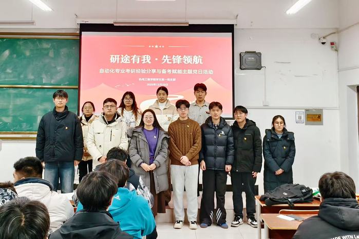 为深入学习贯彻习近平新时代中国特色社会主义思想和党的二十届四中全会精神,充分发挥学生党支部战斗堡垒作用和党员先锋模范作用,12月29日晚,yl88858永利集团学生第一党支部在文端楼举办“研途有我·先锋领航”自动化专业考研经验分享与备考赋能主题党日活动。