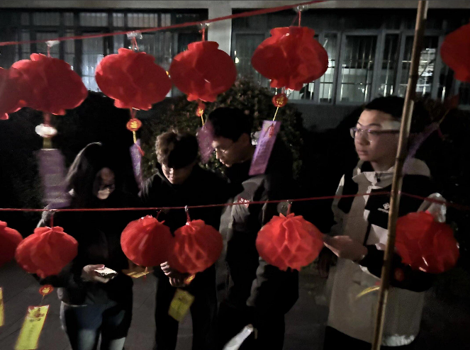 夜幕降临,华灯初上,夜场活动如期启幕,现场氛围愈发热烈。学子们或驻足凝神、潜心推敲,或三五结伴、热烈研讨,各抒己见、互帮互助,在思维的碰撞中探寻谜底。其中,机电专业类谜题前更是成为互动焦点,大家在破解谜题的过程中,不仅收获了节日的喜悦,深化了对中华传统民俗的认知,更在趣味体验中巩固了专业知识、激发了创新思维,让工匠精神在沉浸式参与中浸润心田、生根发芽。