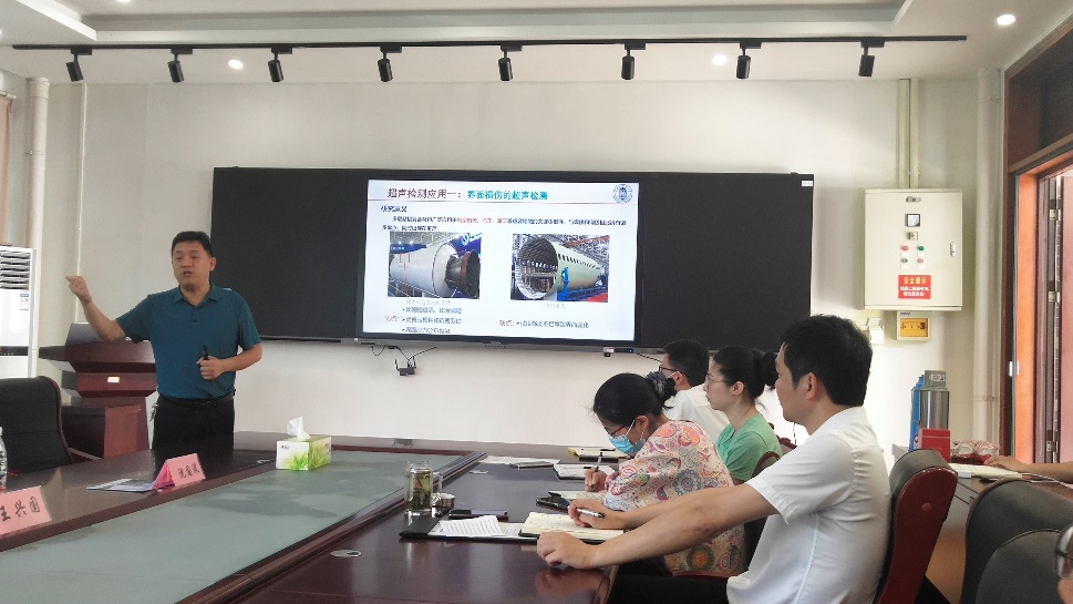 座谈会结束后,王兴国教授为我院教师作了题为“超声无损检测技术及其应用”的学术报告。王兴国围绕超声无损检测技术基本原理、界面损伤的超声检测、多相流的超声多普勒检测、管道缺陷的超声检测等做了深入介绍,最后还展望了超声无损检测技术的发展前景。学术报告会结束后,王兴国还就国家自然科学基金申报书撰写技巧同与会教师进行了互动交流。