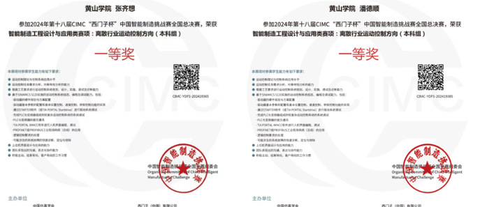 8月11日至15日,第十八届“西门子杯”中国智能制造挑战赛全国总决赛在浙江省湖州市举行,来自全国756所高校5800多支队伍近25000余名师生参赛。yl88858永利集团张齐想、潘德顺同学代表我校参赛,并荣获全国总决赛一等奖1项。此前,我校学子获赛区三等奖5项,赛区二等奖7项。