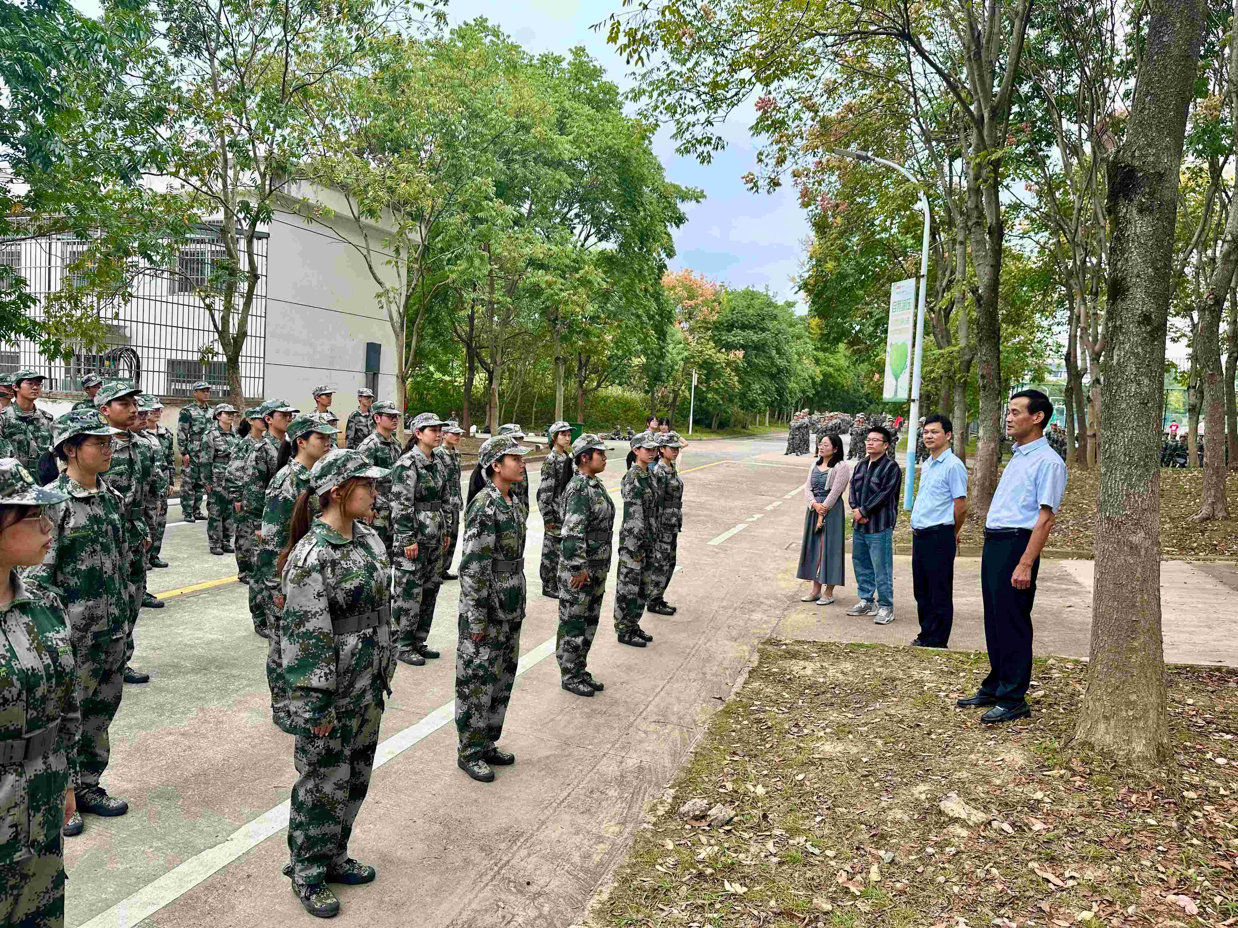 学院领导在新生辅导员的陪同下,逐一走访了各个训练方阵,与教官和新生们亲切交流。汪双安代表学院,对教官们的无私奉献和辛勤付出表示诚挚的感谢,并走到学生方阵前,询问学生军训情况,鼓励大家在军训中培养出纪律性、责任感和集体荣誉感。他强调,军训不仅是对同学们身体素质的一次锻炼,更是对意志品质、团队精神的一次深刻磨砺。他希望同学们能够珍惜这段经历,将军训中培养出的优良作风和纪律观念内化于心、外化于行,成为自己未来学习、生活中的宝贵财富。