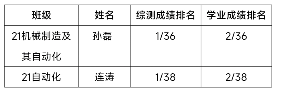 根据《85588永利集团国家奖学金管理办法(修订)》(校学[2020]8号)和《关于做好2024年国家奖助学金评审工作的通知》的规定和要求,经学生个人申请,班级推荐,学院学生奖助工作领导组审议,拟推荐2021级机械制造及其自动化专业孙磊、2021级自动化专业连涛为国家奖学金推荐人选。现按规定予以公示。